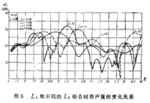 如圖所示:當(dāng)?shù)谝磺婚L度L1為第二腔長度的L2的一倍時,雙腔消聲器明顯地對某些頻率失效,在某些頻段出現(xiàn)較深的低谷,因此在設(shè)計雙腔擴張式消聲器時,應(yīng)避免采用L1/L2=2的結(jié)構(gòu)方案。